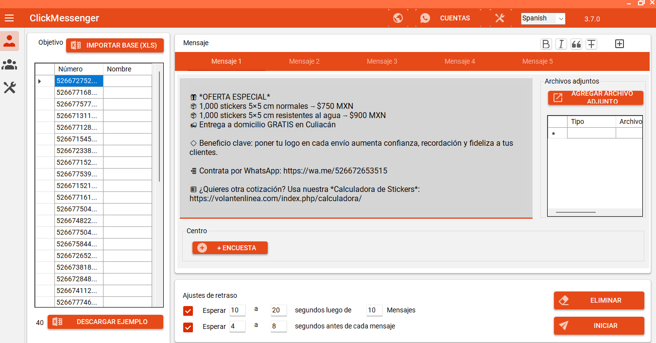 Segmenta tu base, envía ofertas relevantes y convierte más con mensajes directos al WhatsApp de tus clientes.